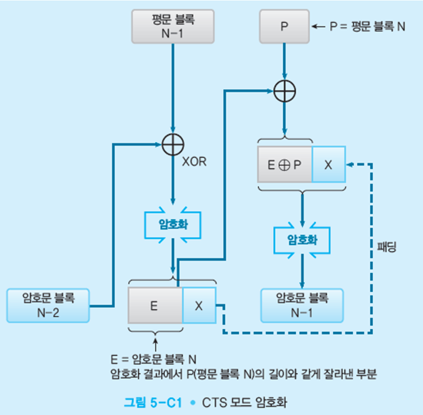 | 이름 | ECB모드 | CBC모드 | CFB모드 | OFB모드 | CTR모드 | CTS모드(추가) |